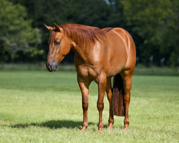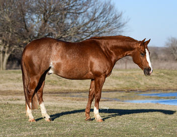 This has to be the cutest little red mare on earth. She has 6 Million Dollar Sires & NRHA Hall of Famers on her papers. She is the first foal out of the durable show mare, Custom Cromed Anna. This little gal is super trainable, cute as a button going around and has tons of style in the arena. She is easy peasy to ride and has been hauled a ton but unshown as a 3 yr old. Its exciting to think about her future as a show horse, as well as her potential as a broodmare after a career. Good Xrays on file, 5 panel negative, natural tail. NRHA, NRBC, RMRHA Stallion Stakes.